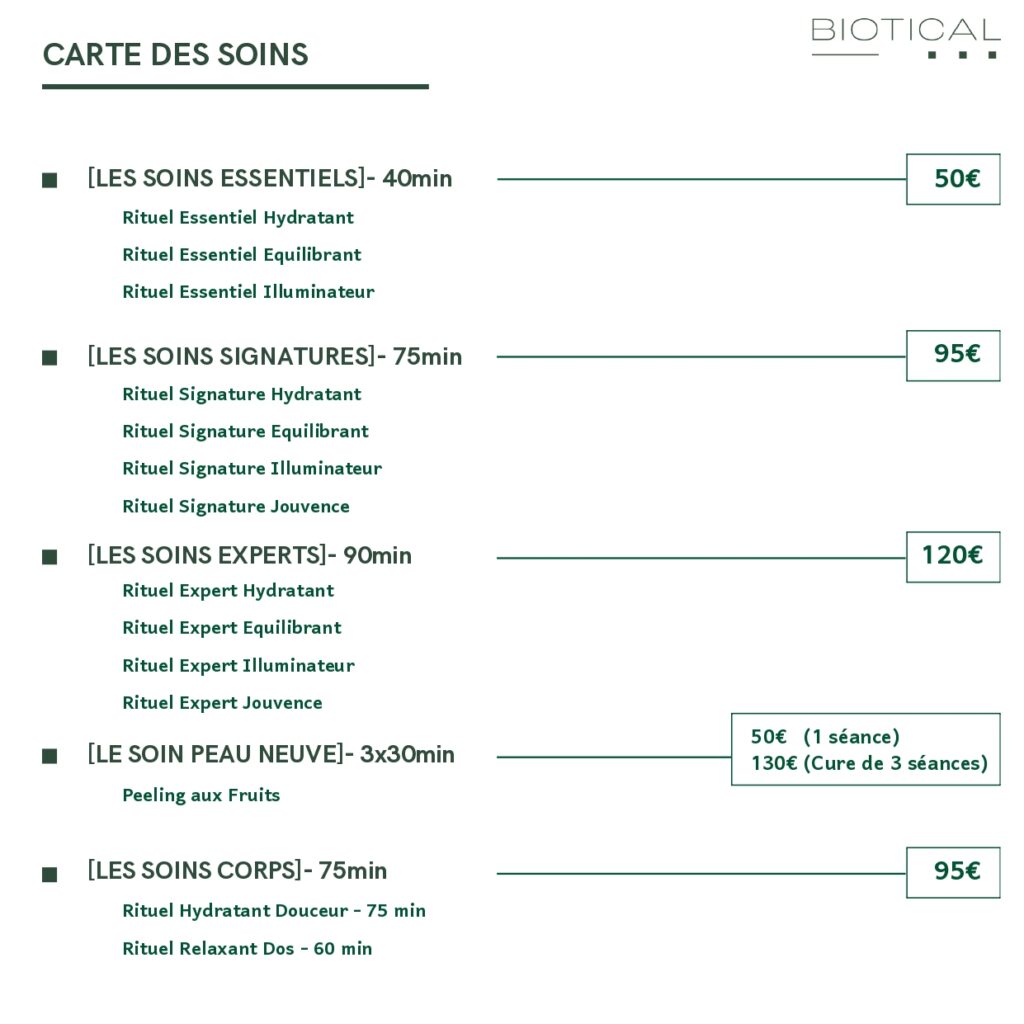 - Pour les soins spécifiques Biotical et les protocoles LPG, voir palette en dessous.