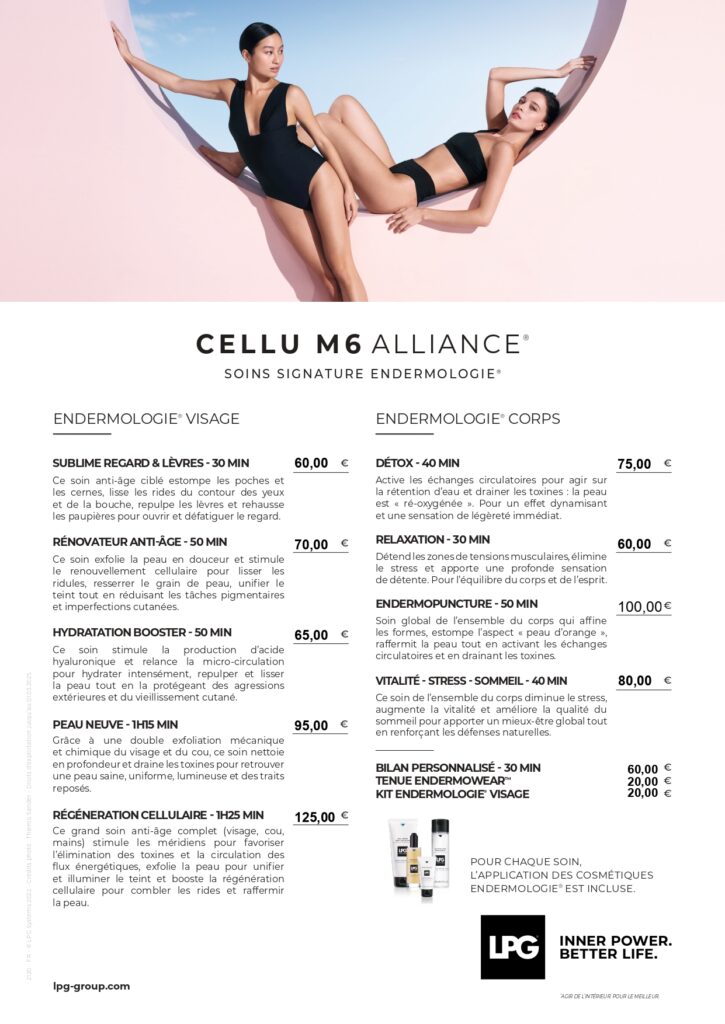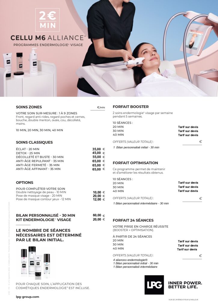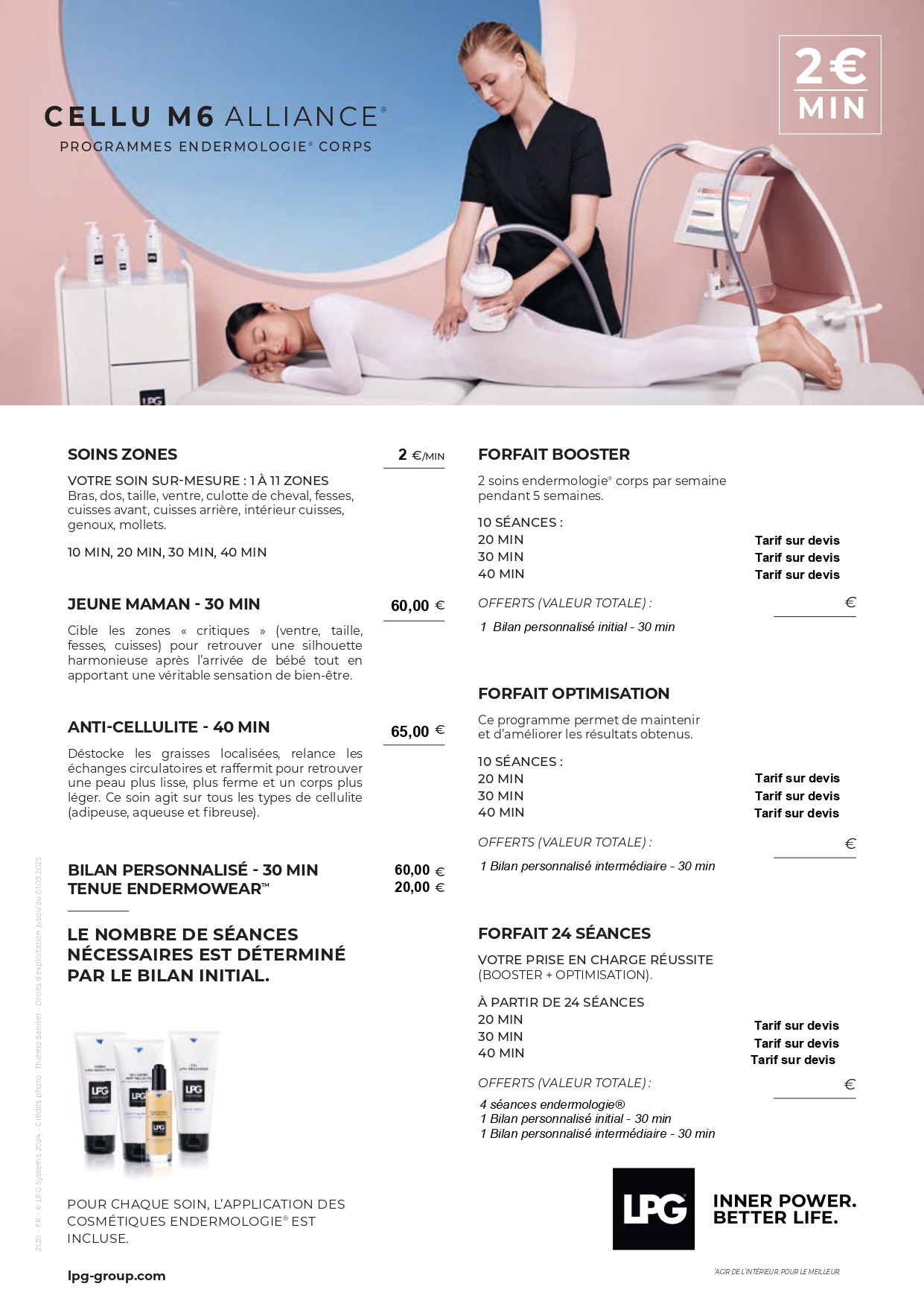 - Pour le détail des séances, des zones et des cures LPG, voir palette en dessous.